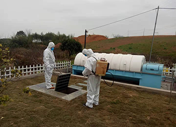 2021年12月22日科然環(huán)境運(yùn)維組員工為號召國家防控疫情政策,對各個終端和管網(wǎng)的污水池進(jìn)行全面的清掏、消殺工作。運(yùn)維組消殺人員配有專業(yè)的防護(hù)服、手套、口罩以及專業(yè)的消殺工具。